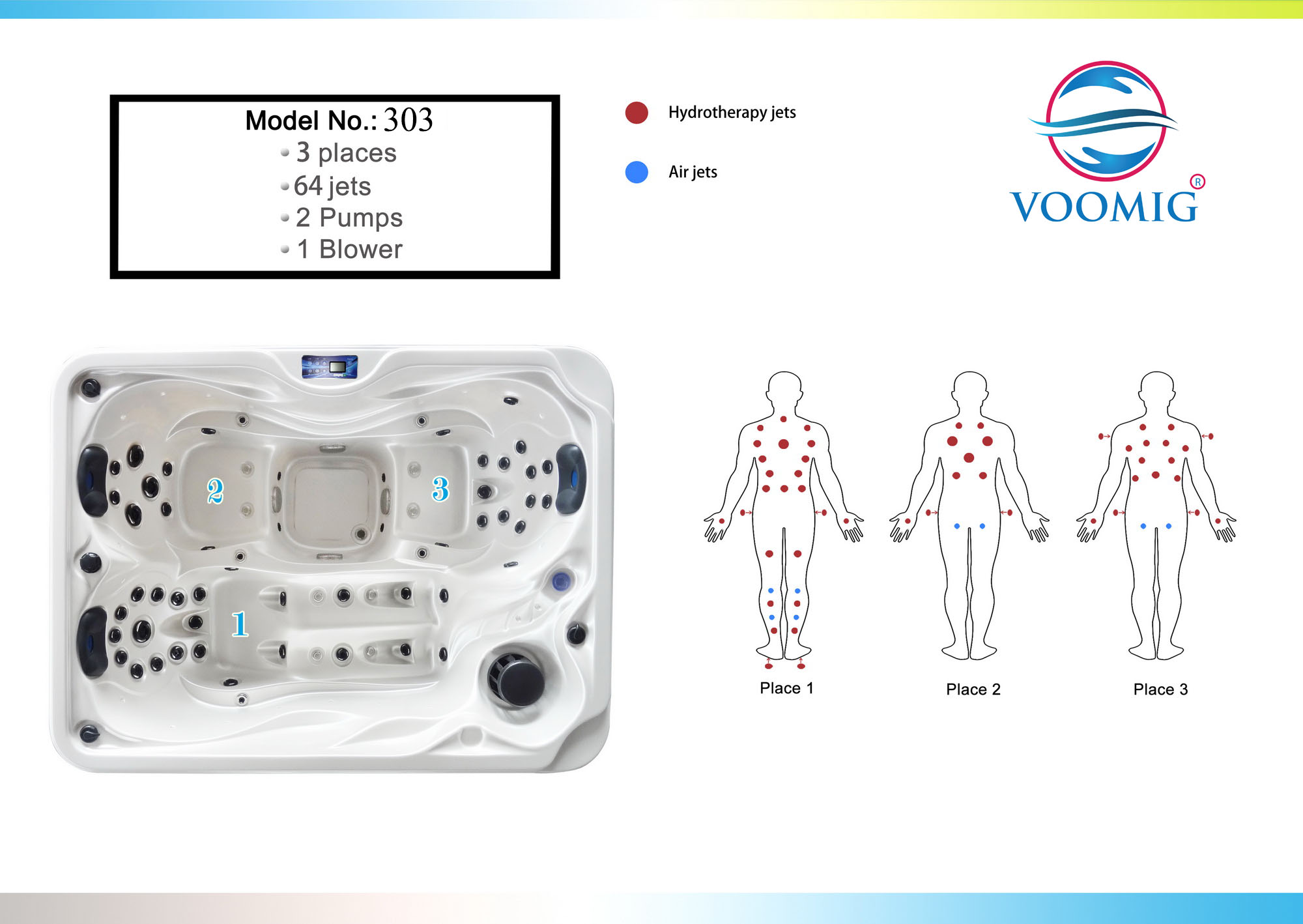 | Total Quantity of Jets (304 Stainless steel trim) | 64pcs | Spa cover | 1pc |