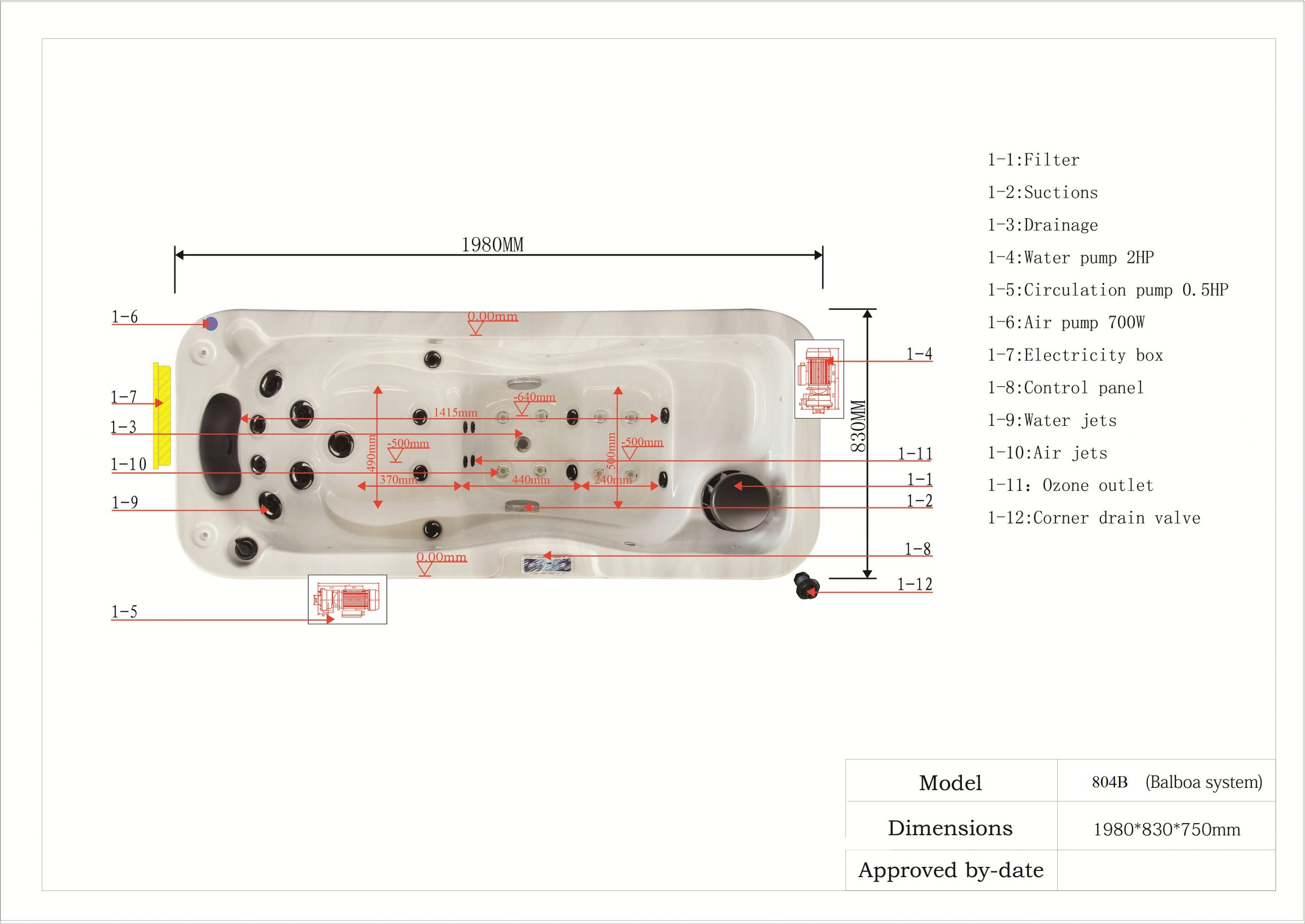 | Control System | USA Balboa | 2.5” hydrotherapy jets | 2pcs |